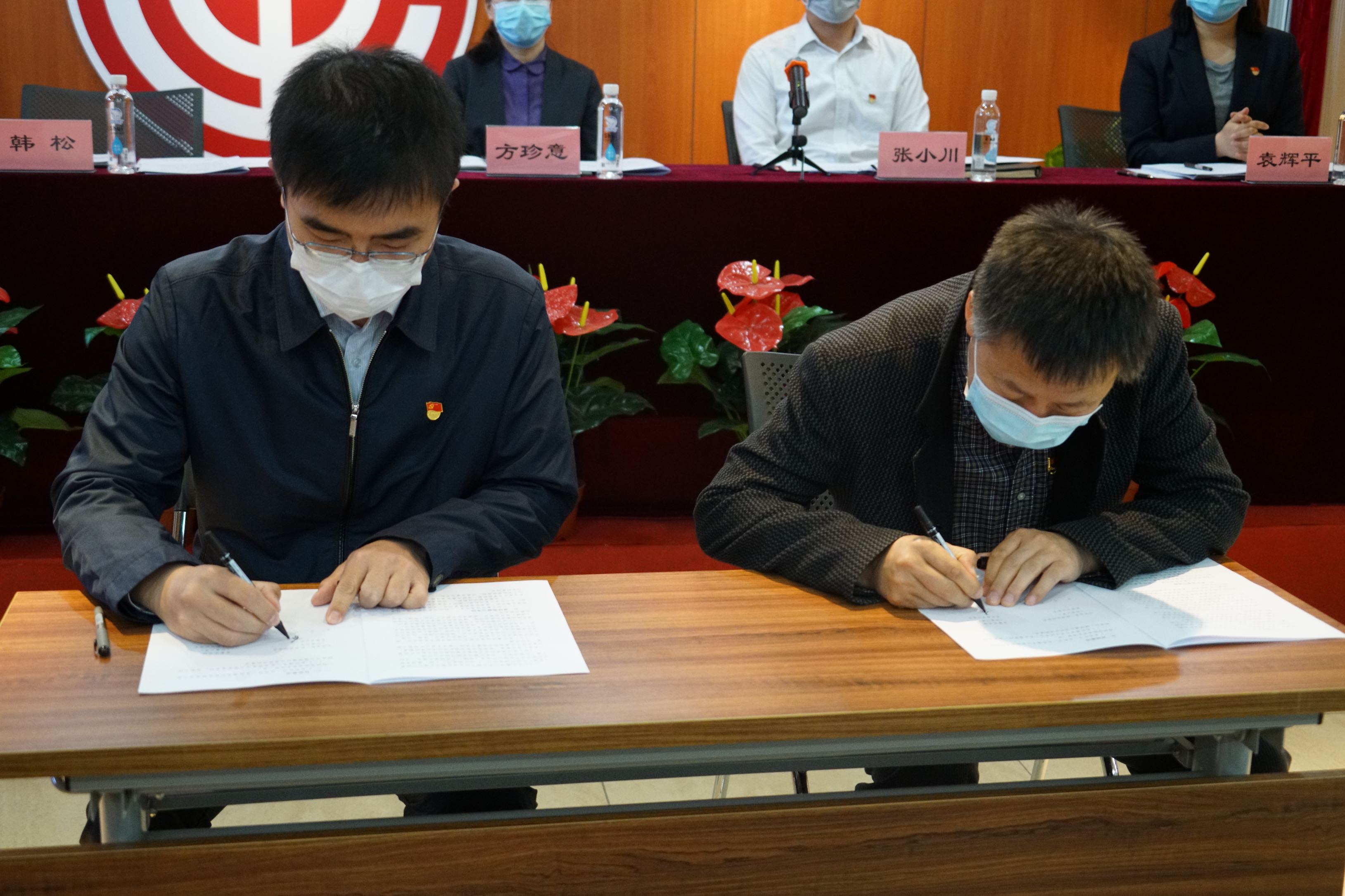韓松書記與部分所屬單位黨組織負(fù)責(zé)人簽訂《2020 年度一輕研究院全面從嚴(yán)治黨(黨建)主體責(zé)任書》。